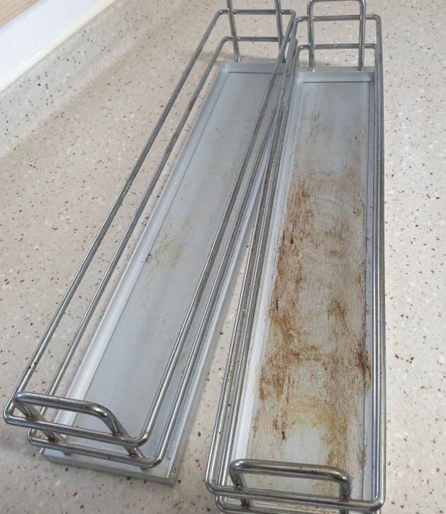 그런 조미료를 넣어두는 펜트리는 항상 흘리거나 조금은 자국이 생기기 마련인데,