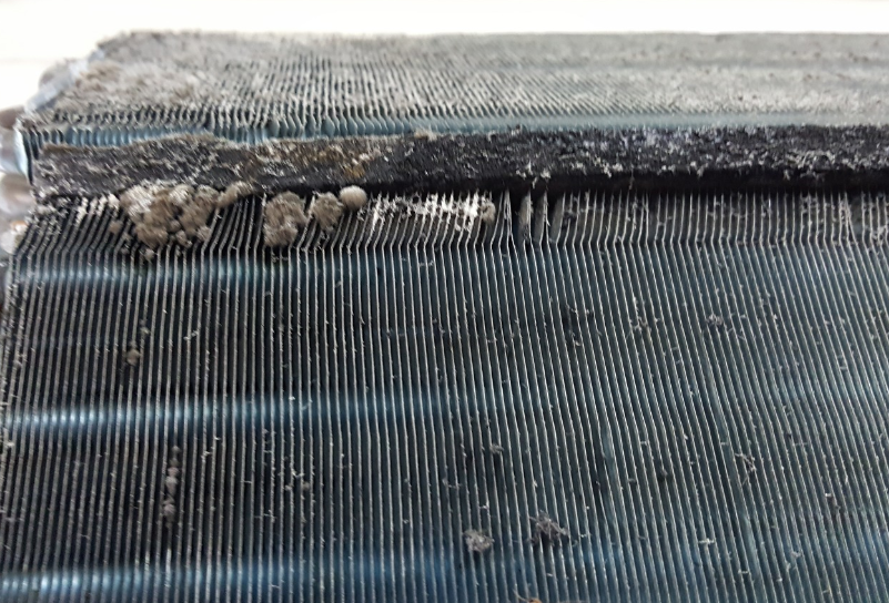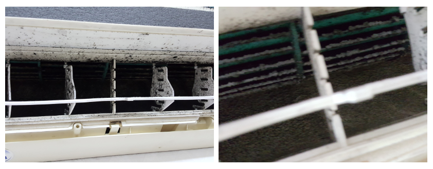 오랫동안 청소를 하지 않아 상태가 심각한 상태인데, 이런 상태에서 에어컨을 틀게 되면 냄새가 많이 나게 됩니다.