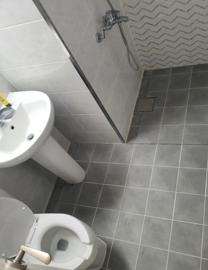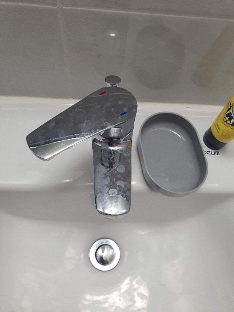 백시멘트, 먼지, 수전의 물때 등 지저분한 모습이였습니다.
