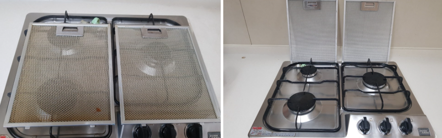 주방의 가스레인지후드에도 먼지와 기름때가 잔뜩입니다.