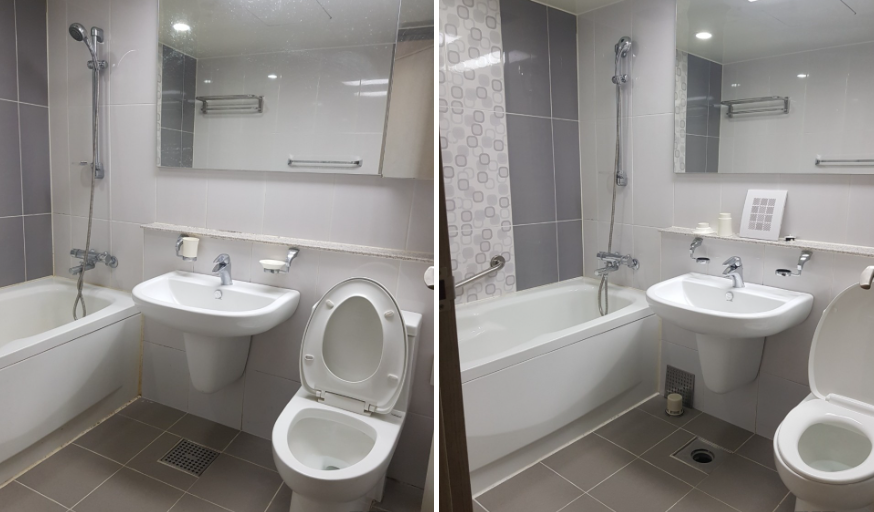 욕조 실리콘 곰팡이 제거 전/후 입니다.