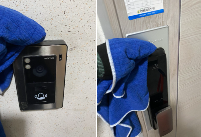주민들이 무심코 터치하는 초인종이나 도어록의 경우 소독 성분이 포함된 세제를 도포하여