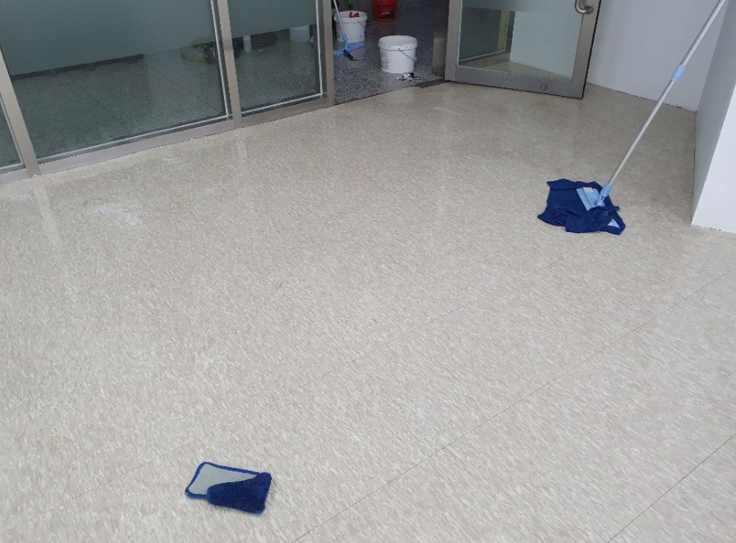 상가 입주공사가 한창이여서 공용대기실의 바닥왁스청소는 완료했지만